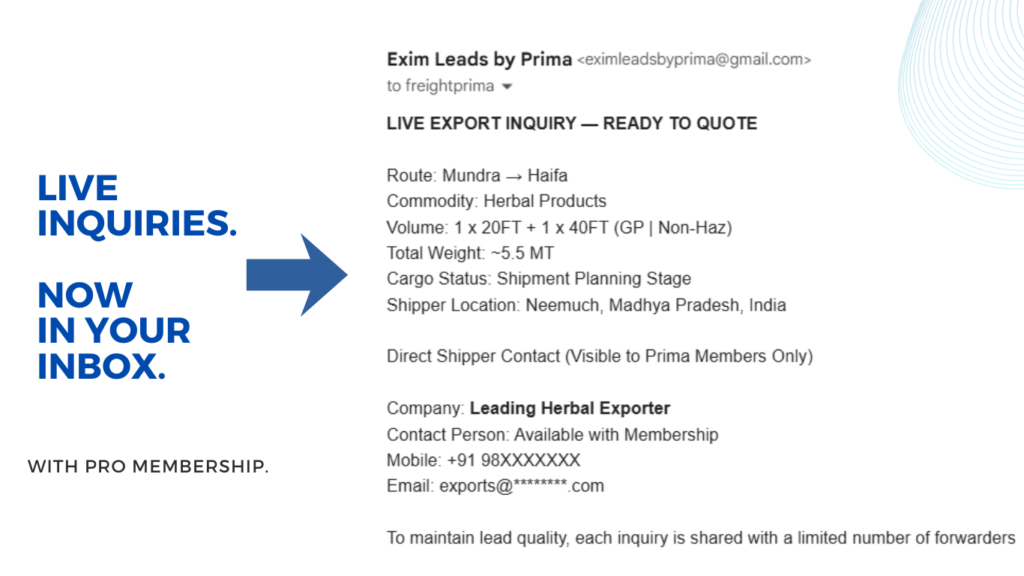 Get Live Shipment Inquiries from Exporters & Importers Across India.